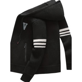 Elegant Mid Stretch Cardigan, Men's Casual Full Zip Up Cardigan Sweater Coat For Fall Winter